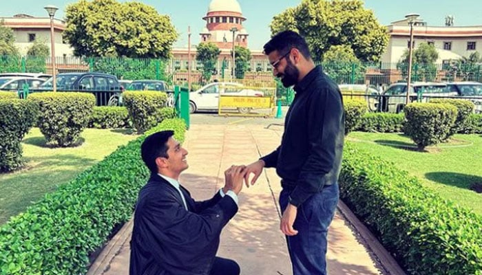 بھارت: ہم جنس پرست جوڑے نے سپریم کورٹ کی عمارت کے سامنے منگنی کرلی