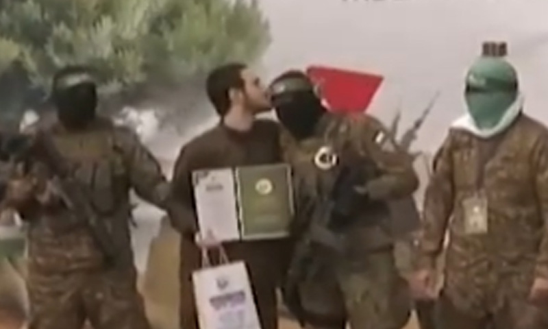 قید کے دوران حسن سلوک ، اسرائیلی یرغمالی نے حماس کے اہلکاروں کا ماتھا چوم لیا