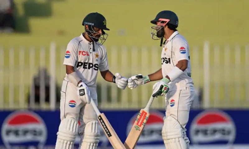 پنڈی ٹیسٹ کا دوسرا دن: سعود شکیل اور رضوان نے سنچریاں بنالیں