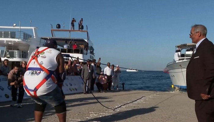 مصری شخص کا کارنامہ، دانتوں سے بحری جہاز کھینچ ڈالا!