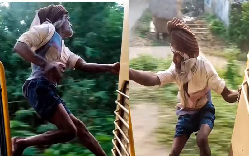 بوڑھے شخص کا چلتی ٹرین پر خطرناک اسٹنٹ وائرل