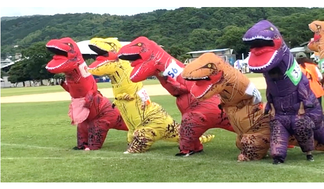 ڈائنوسار کے لباس میں ریسنگ جاپان میں ٹرینڈ بن گئی