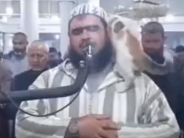 نماز تراویح کی براہ راست نشریات کے دوران بلی امام کے کاندھے پر بیٹھ گئی