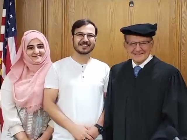 پاکستانی جوڑے نے مشہور امریکی جج فرینک کیپریو کو پشاوری ٹوپی گفٹ کردی